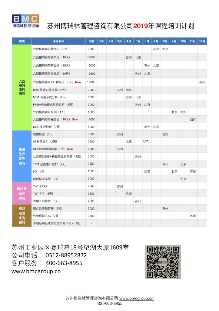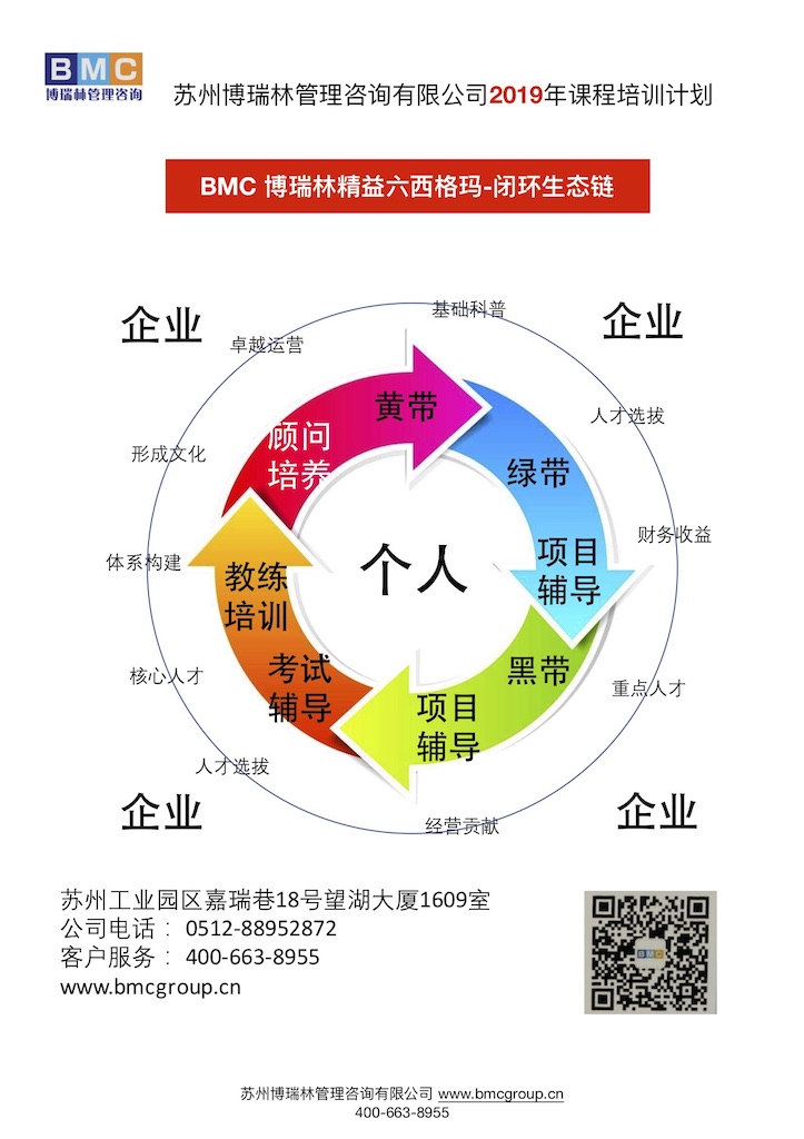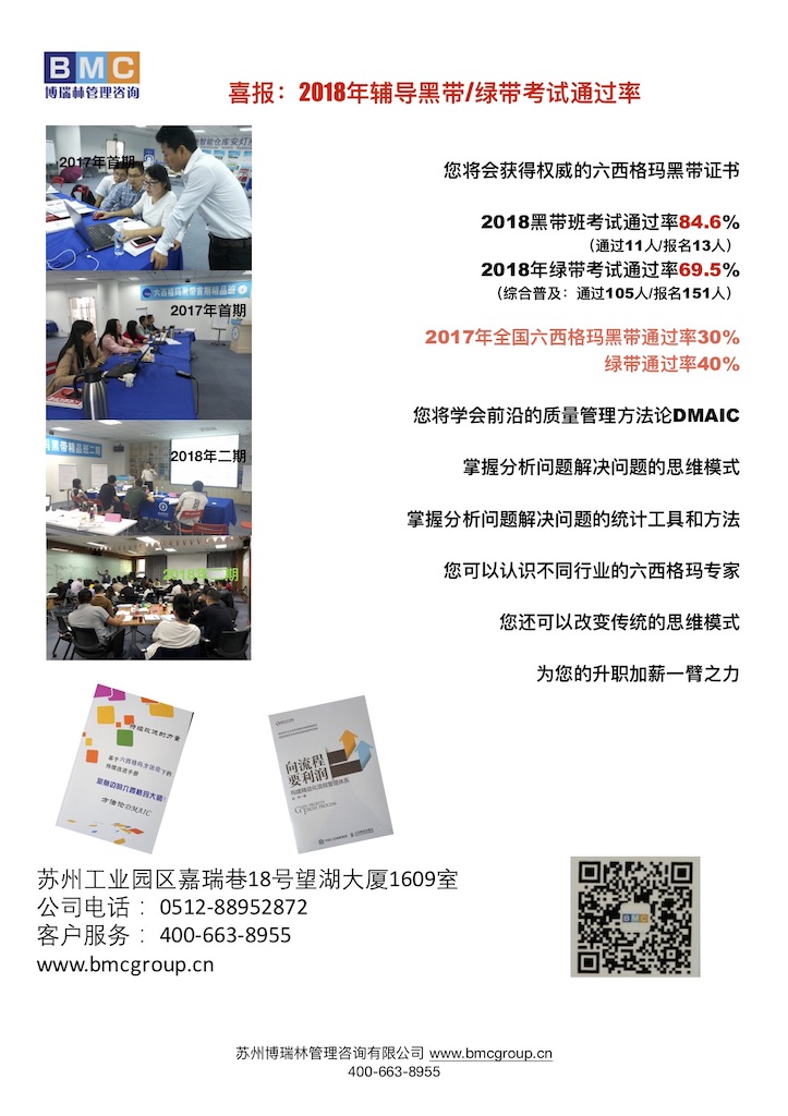 骄人的成绩只是一个开始,我们可以给的更多。BMC博瑞林已经构建完整的六西格玛闭环生态链,黄带~绿带~绿带辅导~黑带~黑带辅导~考试辅导~教练培训~顾问培养!2018年12月12日绿带班启动, 详细及2019规划请参考相关信息!